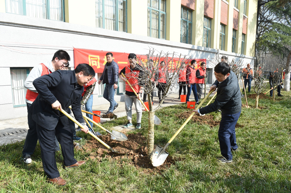 学校有关职能部门及环境学院20余名青年志愿者参加了本次义务植树活动。(文/方玉霞 图/朱昊)