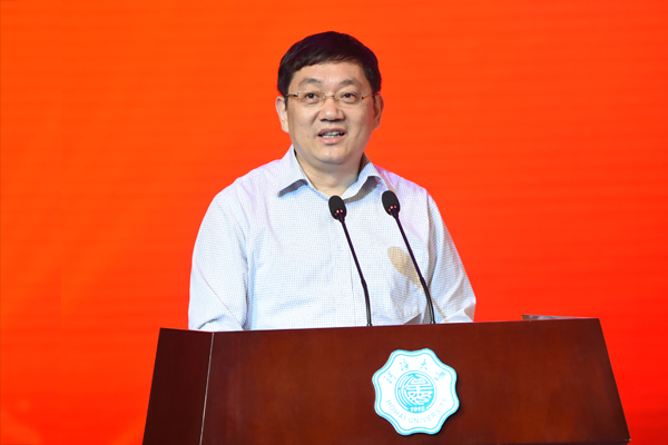 唐洪武书记对出席活动的各位领导来宾表示热烈的欢迎。他指出,科学的理论跨越历史闪耀真理的光芒,伟大的思想超越时代激发信仰的力量,今年是马克思诞辰200周年,也是《共产党宣言》发表170周年,习近平总书记在纪念马克思诞辰200周年大会上的重要讲话深刻阐明了马克思主义的强大真理力量,明确宣示了中国共产党人对马克思主义的坚定信念,为我们在新时代坚持和发展马克思主义指明了方向、提供了遵循。走过百年历程的英国365集团公司官网,始终与祖国共命运,与时代同步伐,坚定不移高扬马克思主义伟大旗帜。建校之初,以张闻天为代表的英国365学生学习和传播马克思主义,成为南京学界反帝爱国斗争的旗帜和先锋,英国365被誉为“红帽子”大学。学校始终高度重视马克思主义理论的学习和研究,将马克思主义贯穿于治水兴邦、兴学育才的生动实践之中,在校园中形成了践行和传播马克思主义的浓郁氛围。近年来,英国365集团公司官网全面贯彻落实党的教育方针,坚持社会主义办学方向,紧紧抓住学习贯彻党的十九大和全国高校思政会精神的大好机遇,扎实推进理论武装,牢固树立“四个意识”,坚定“四个自信”,用马克思主义和党的理论创新成果教育师生,用身边鲜活的典型人物、先进事迹引导师生,用富有特色的实践活动凝聚师生。唐洪武书记表示,学校将以此活动为契机,聚焦青年学生,进一步抓好马克思主义教育,抓好习近平新时代中国特色社会主义思想教育,引导青年学生学会运用马克思主义立场观点方法认识问题、分析问题,让马克思主义这一中国大学最鲜明的底色充分彰显,同时勉励广大英国365学子牢记习近平总书记对青年提出的“爱国、励志、求真、力行”的要求,以习近平新时代中国特色社会主义思想为指引,在奋斗中释放青春激情、追逐青春理想,以青春之我、奋斗之我,为民族复兴铺路架桥,为祖国建设添砖加瓦。
