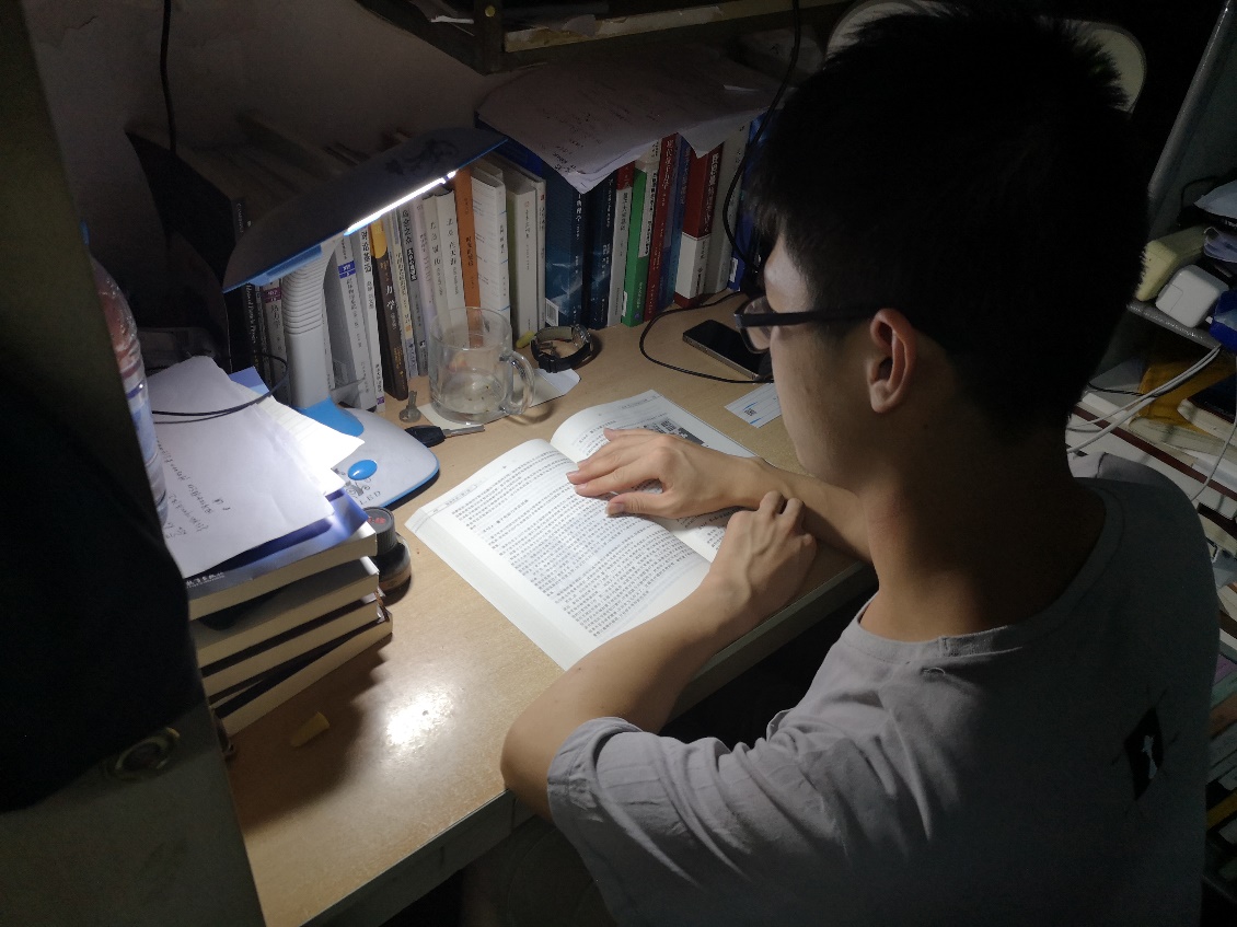 小县城长大的他,面对的是知识与书籍的贫瘠,来大学之后,图书馆提供了丰裕的精神宝藏,他开始广泛涉猎,在专业课与各种事务中抽出时间,去探索一个广大的世界。读书可以增长见识,陶冶情操,于他则更有另一重好处,那就是看到不一样的人生与经历,这个过程就是不动声色地观看他人,同时观照自己的内心,酸甜苦辣,离合悲欢。他能从中读到自己的渺小,也能读到生活的美好与希望,读到生命虽然脆弱却也能坚韧而丰富。这些都给了他克服困难的力量与前进的勇气。他一直坚持平均每周至少读完一本书,生命也因之更加丰富精彩。