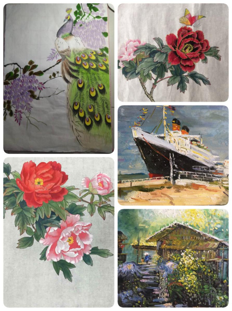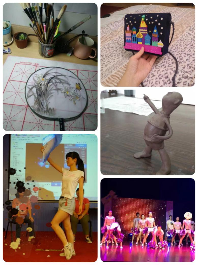 大一时参加啦啦操大赛,尽管肢体僵硬但一次训练都没有缺席,最终获得了第八名;庞欣欣和学校画室的小伙伴一起开始学习油画,每周六一幅油画习作,在许多人以“学业忙”为由中途放弃的时候,哪怕是需要挤校车往返,她也坚持到了最后;第一次捏泥塑,她得到了南京泥塑老艺术家的夸奖;学院的晚会上,她和两位女生跳的开场舞,获得了“最佳节目”的荣誉;英国365百年校庆,她的一幅工笔画,获得了文化作品大赛的一等奖……
