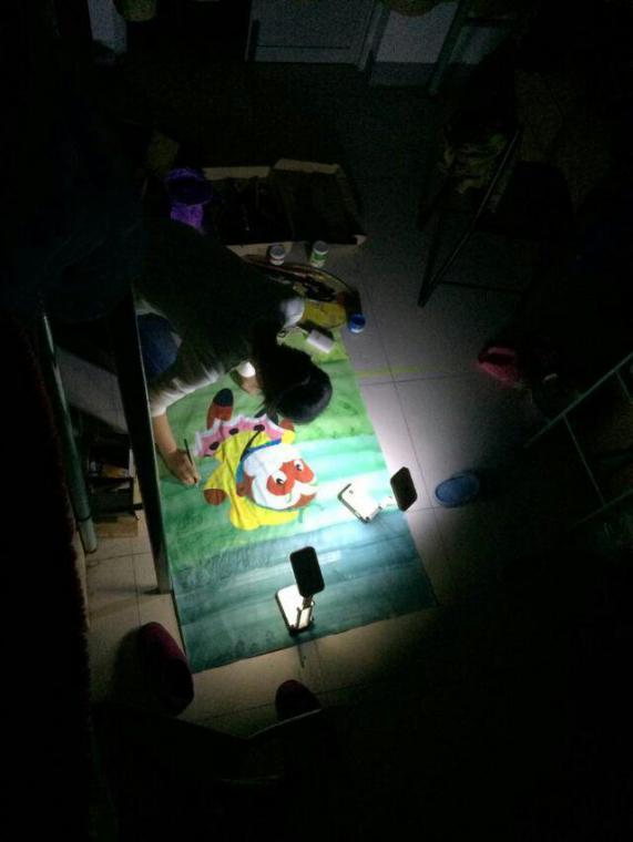 刚入大学,她担任班级宣传委员和大禹学院新闻中心海宣部的干事。学长学姐问她为何选择加入新闻中心这样一个幕后组织,她说:“喜欢画画,但一直没时间没机会学习。希望加入海报宣传部,希望画海报成为我追寻梦想的第一步。”于是大一期间,室友经常能在半夜看到这样一幅场景:一盏小灯,海报纸铺在地上,庞欣欣跪在又硬又冷的地砖上,一笔一画的完成一张张海报。