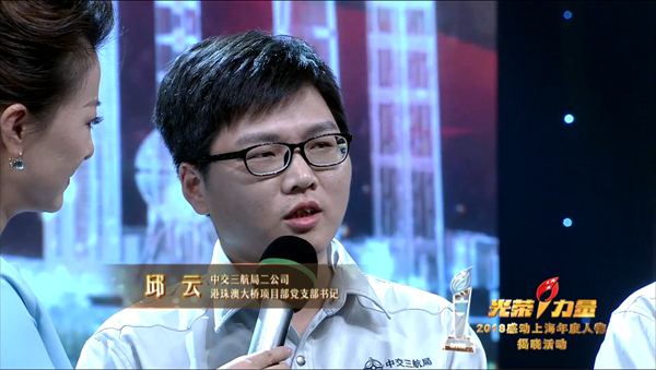学无止境,时创时新。为了缓解工作压力,邱云与党支部成员绞尽脑汁,为工人们开展各类文娱活动,包括趣味运动会、友谊篮球赛、青年员工联系会等一个又一个有趣的活动。2015年,为了加强对外宣传力度,邱云先后组织拍摄了以《舌尖上的东岛》《服务在孤岛》《中秋游园会》等短片,反映项目部青年员工坚守孤岛、执着奉献的精神,充分展现港珠澳大桥项目风采。凭借着这些宣传短片,项目部取得了三航局二公司年度宣传总分第一名的好成绩。这些活动的开展,凝聚了人心、鼓舞了士气,也使工人们在短暂休息放松之后,以更大的积极性投入到工程建设中。党支部于2018年9月获得“光荣与力量——2018感动上海十大人物”。