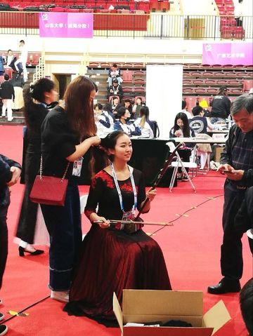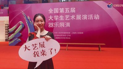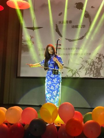 入学以来,她多次参加各类文艺演出并担任负责人,组织、安排艺术团招新,致力于弘扬传统音乐和文化,丰富校园文化生活。担任乐团声部长时,她积极参加“献给母亲的歌”百年校庆文艺晚会、“建校100周年暨中国水利高等教育100年”大会献词大合唱、“向梦想出发”英国365集团公司官网2015迎新晚会、八大校级组织联谊晚会、2016年5月“江南好”英国365集团公司官网民族乐团专场音乐会,具有大局意识——服从组织安排改学中胡、高胡、打击乐等乐器。担任民族乐团团长时,她主动负责2017年“点亮未来新年音乐会”、“河你一起嗨”跨年晚会等众多校内大型活动演出台前幕后的工作,组织团员日常排练、与各位指导老师建立良好关系、准备验收材料并代表民族乐团成功验收为省级乐团、组织安排团员们参加江苏省第五届大学生艺术展演并获得器乐组特等奖的殊荣。担任大学生艺术团团长期间,她组织安排各分团日常表演、排练、高雅艺术进校园等工作,作为民族乐团首席组织团员赴上海参加全国大学生艺术展演,比赛期间得到了郭书记、万部长的亲切慰问,最终获得了全国赛一等奖的好成绩!在大学生艺术团的三年,一路从默默无闻的声部长摸索到大学生艺术团团长,是她从事校园文化艺术工作的见证。