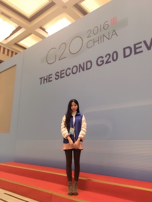 在校期间,叶彤关注社会热点,思想政治方面积极向上,如今已经成为一名光荣的共产党员,在校内外各类平台中绽放光彩。在南京G20工作组会议会务组,作为陪同翻译员参与全程工作,这一次经历让她体会到,作为青年学生与时代同频共振的光荣使命。