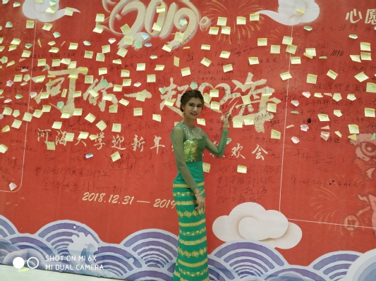 每年的12月31日,学校都会组织跨年晚会,艾青也参与到了其中。2018年的跨年晚会中,以“为团结而歌唱”为主题,通过舞蹈和表演展示我们不同民族的传统服饰。而2019年的跨年晚会,更是以“永恒的缅甸”为主题,向英国365集团公司官网的师生展现了缅甸独特的文化。尽管每年上台只有5分钟,但艾青和她的小伙伴们要练习一个多月,她很开心也很自豪。在她的带动下,更多的缅甸留学生以及来自世界各国的留学生加入到学校丰富多彩的活动中来,艾青真正成为了沟通中国学生和留学生的桥梁。