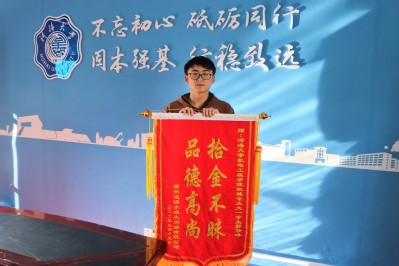 该生在2019年3月中旬参加常州恐龙大剧场举办的公益性质童话剧志愿服务时,捡到一个装有四万余现金和若干票据证件的包,主动联系失主,第一时间交还给失主,获得失主、主办方的赞扬。常州迪诺水镇大剧场有限公司相关负责人专程赶到学校,赠予“拾金不昧,品德高尚”的锦旗和表扬函,并受到学院通报表扬。该同学不仅弘扬了社会主义核心价值观,更为广大同学树立了道德模范的榜样。
