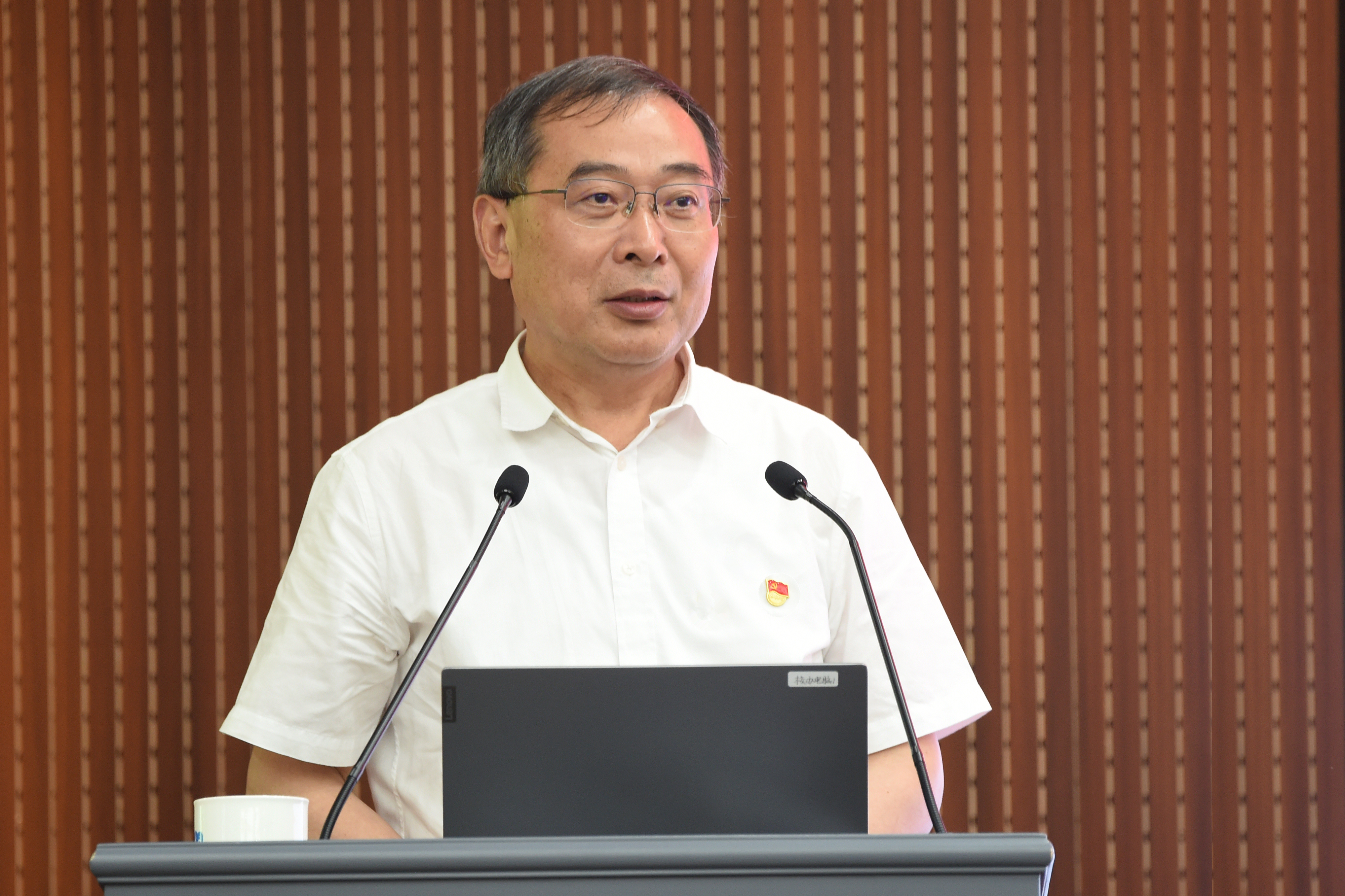 6月8日,校长、党委副书记杨桂山围绕“深入学习贯彻习近平总书记关于教育的重要论述 奋力推动学校事业高质量发展”主题,为部分职能部门党员代表讲授主题教育专题党课。