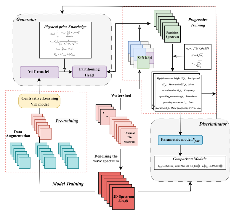 英国365港口海岸与近海工程学院22级博士研究生吕韬在陶爱峰教授的指导下提出了一种新的波谱自动分区方法——物理信息的 Vision Transformer 生成对抗网络(PI-ViT-AN)。这种方法能够有效划分波谱中不同的波浪成分,帮助科研人员更好地理解和预测海洋环境中的复杂物理过程,从而为海岸防护措施的设计和实施提供科学依据。