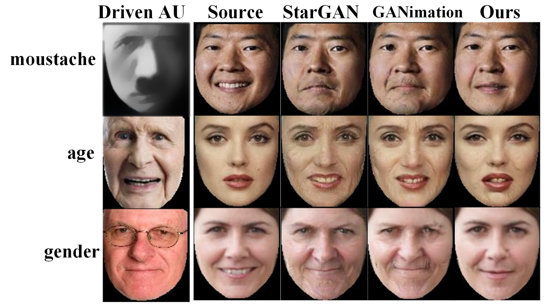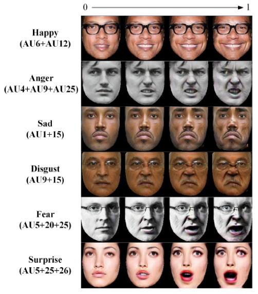 图2:通过编辑多个AU生成的离散面部表情结果