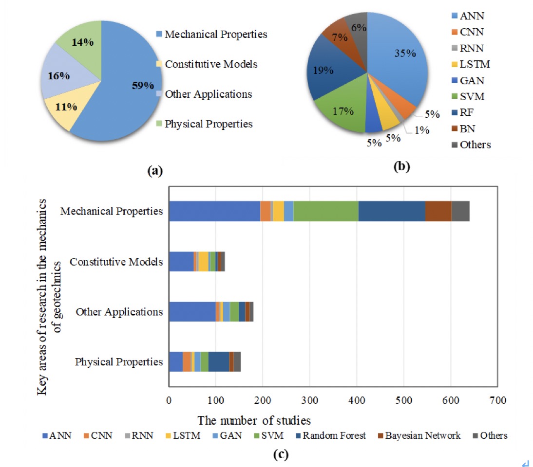 图1 人工智能算法在水工岩土工程力学中的应用情况计量分析