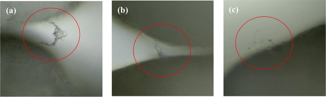 图2 孔隙中纤维状微塑料滞留的微观照片