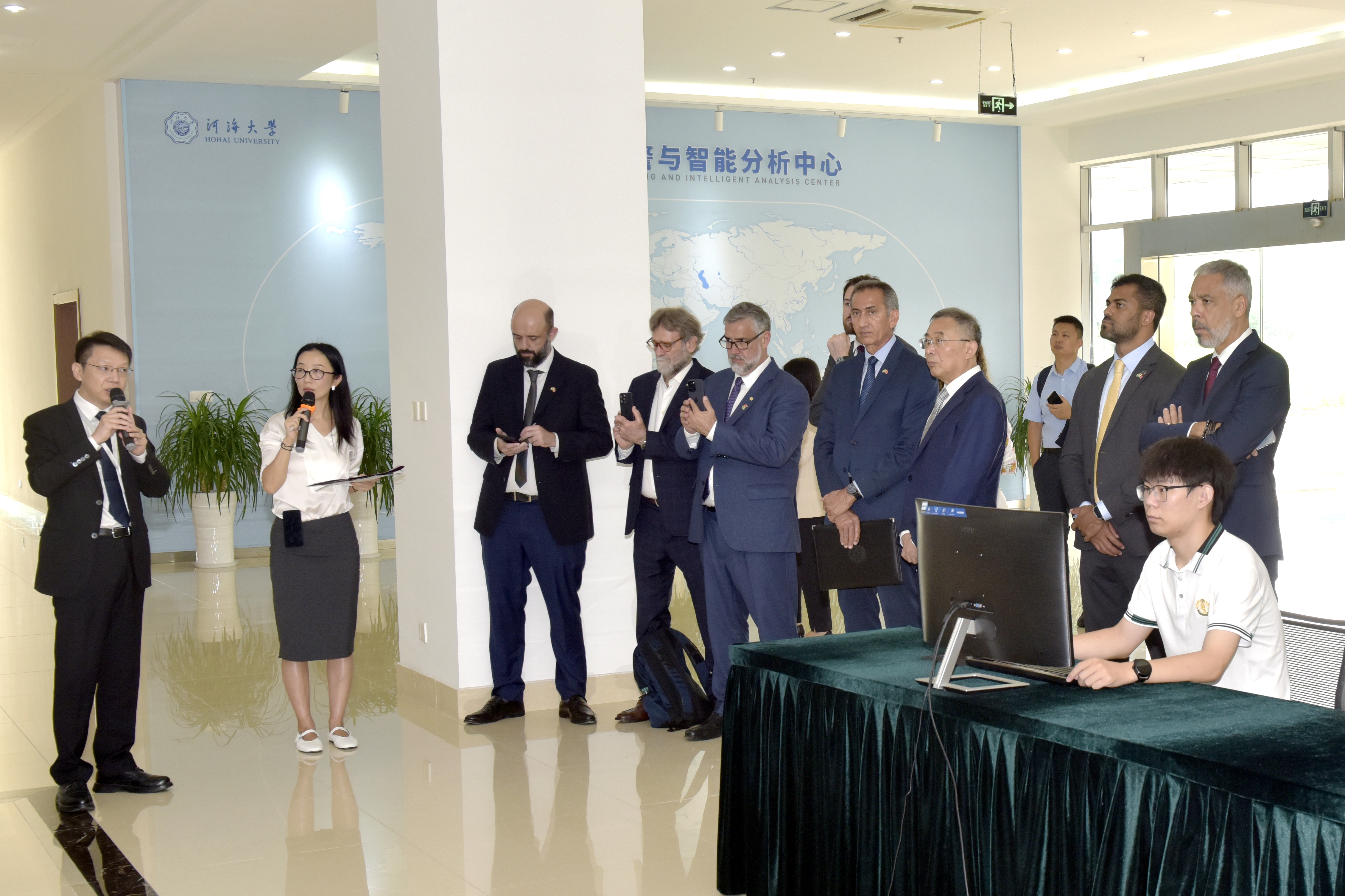 访问期间,代表团参观了英国365集团公司官网牛首山科技园水工试验研究基地,实地考察了学校在服务国家水网建设、海洋强国战略中的重大科研成果,包括全球水灾害模拟预警系统、智能水利调度技术及重大工程案例。