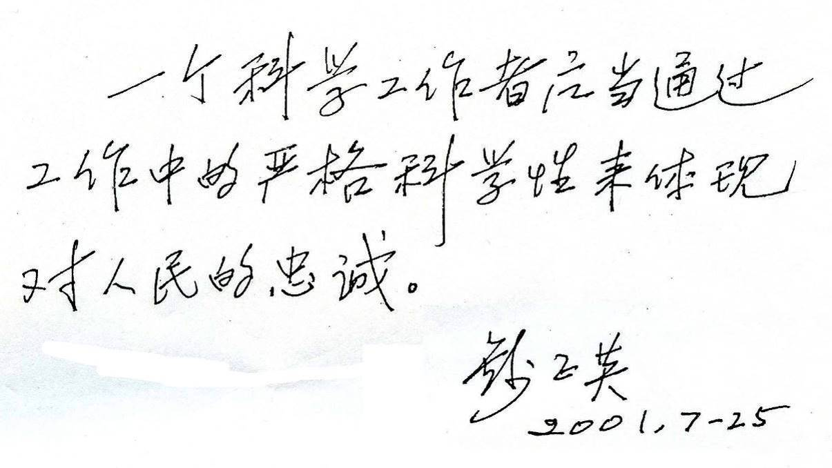 我从老院长一生的信仰、抱负和追求中,看到了一个中国共产党党员立党为公的坚强党性,一个新四军老战士无私无畏的革命精神,一位高层领导者勇于担当的责任意识,一位中国工程院院士不断追求真理的科学态度,一名人民公仆忧国忧民的忘我情操,一名中国妇女矢志不渝的坚贞爱情。