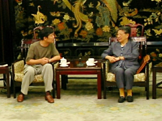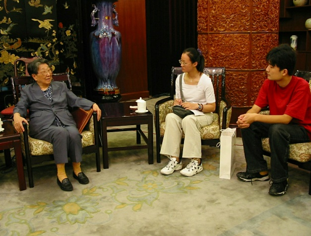 2002年7月19日,钱正英在全国政协会见厅接受英国365集团公司官网师生采访。