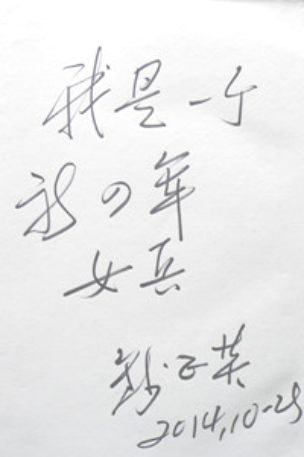 2014年10月,钱正英接受《铁军》杂志记者采访后,欣然写下:“我是一个新四军女兵”。