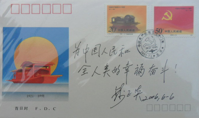 ----钱正英在中国共产党成立70周年纪念封上的题词