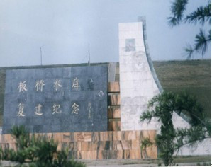 板桥水库原建成于1952年,是中华人民共和国兴建的第一批大型水库之一。1956年经扩建加固,1975年8月8日毁于特大洪水。三日进库水量6. 97亿立方米,洪峰流量1. 30万立方米每秒,均超过原设计值的一倍左右。溃坝瞬时流量高达7. 81万立方米每秒。时值十年动乱,救护不力,卷走数以万计人民的生命财产,为祸惨烈。1987年元月开始复建,历五载建成。除水害、兴水利,必须对人民负责,确保安全。树此以志不忘。