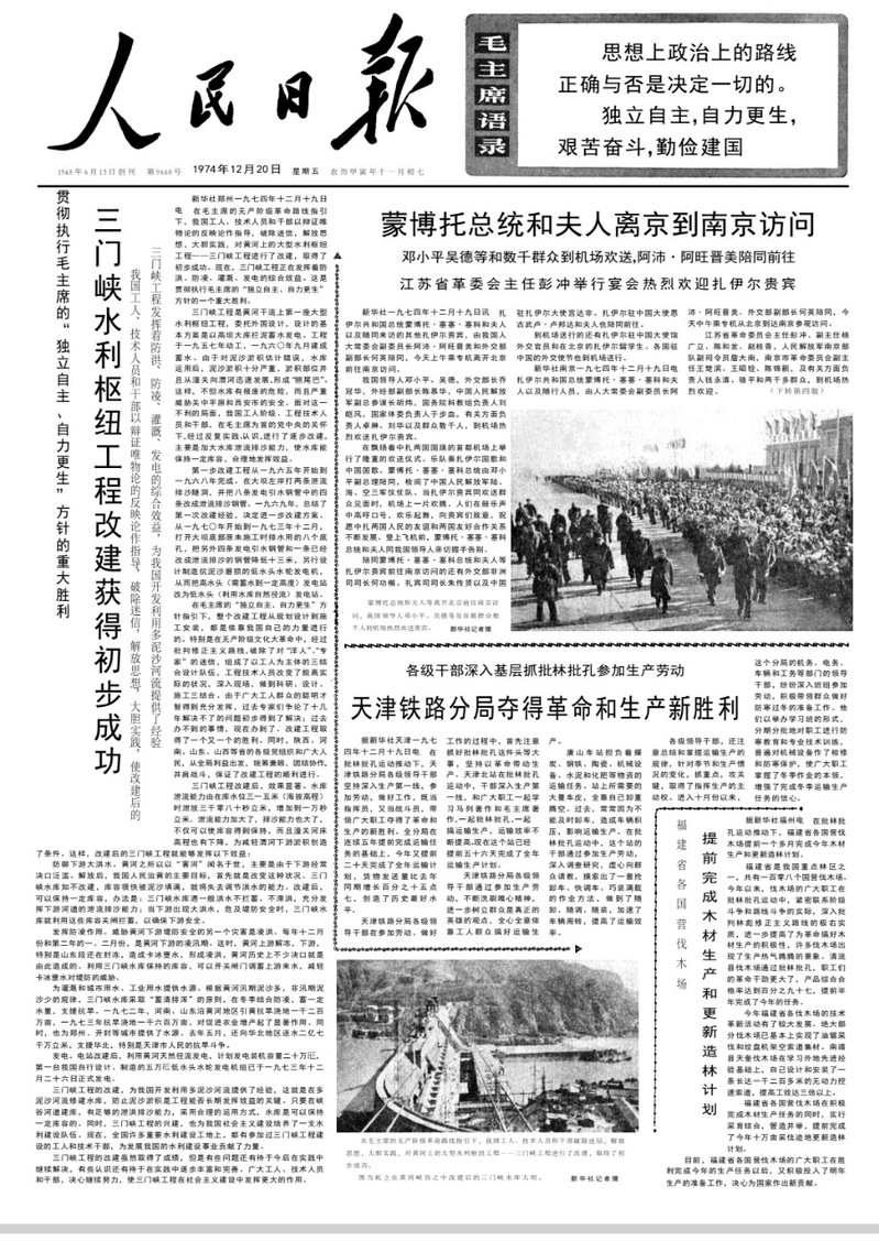 1974年12月20日《人民日报》第一版