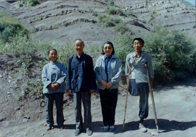 1985年6月,钱正英考察黄河中上游地区小流域治理工作,与承包户农民合影。