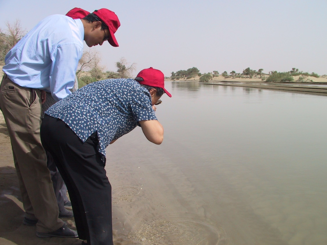 喝一捧新疆母亲河的水----钱正英在塔里木河考察
