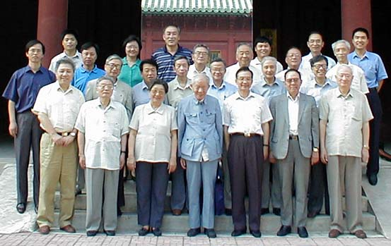 温家宝与“中国水资源”战略研究团队部分成员合影。前排右起:卢良恕,宋健,温家宝,张光斗,钱正英,潘家铮,王淀佐。