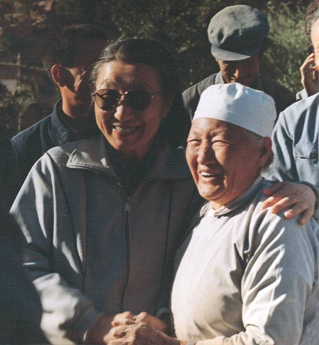 1994年9月,钱正英率水利专家组赴宁夏考察期间,与回族群众亲切相拥和交谈。